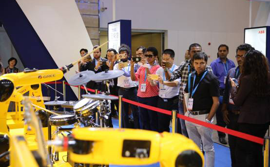 (圖為參展觀眾圍觀格力“G-FMS柔性生產(chǎn)線”)