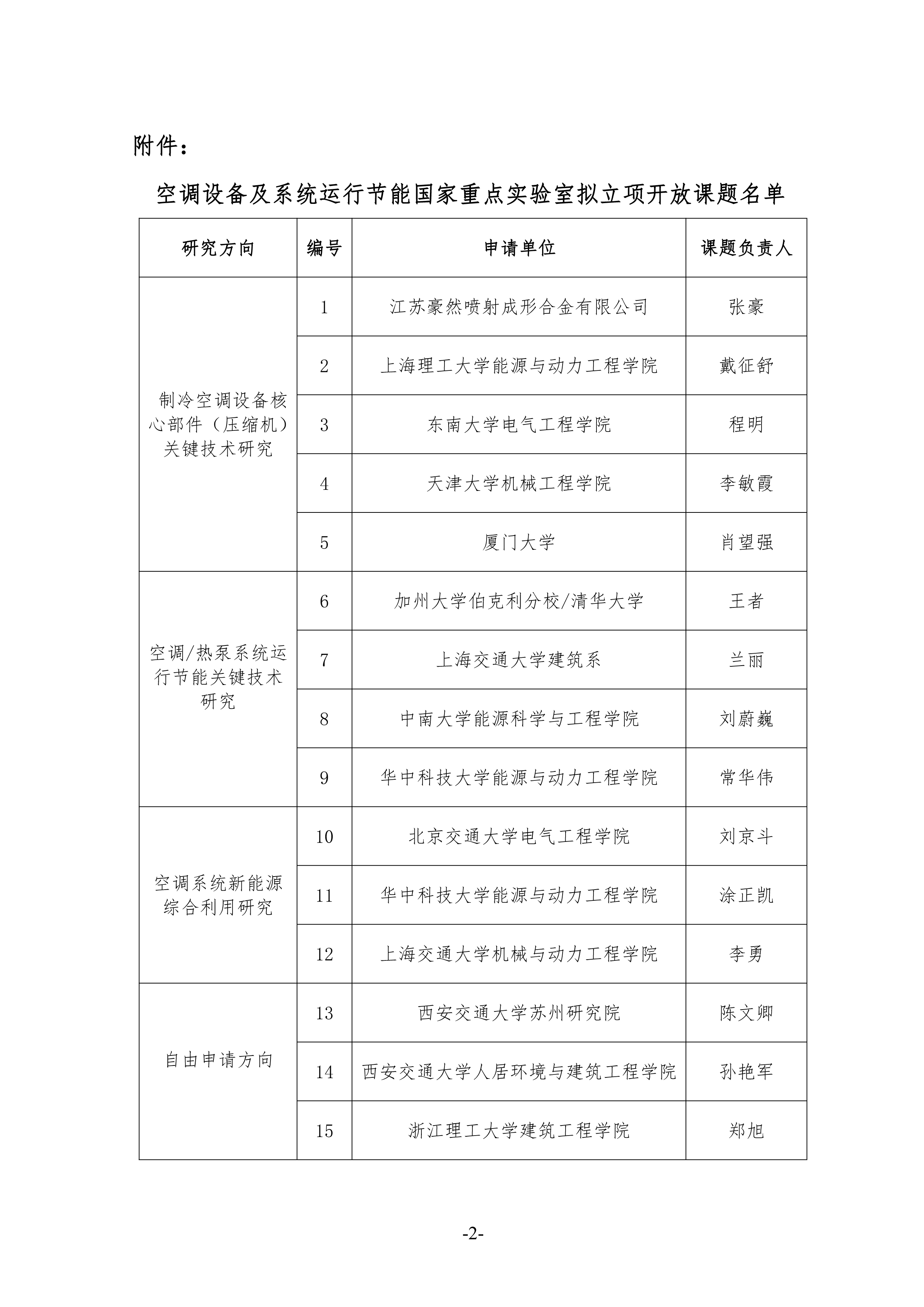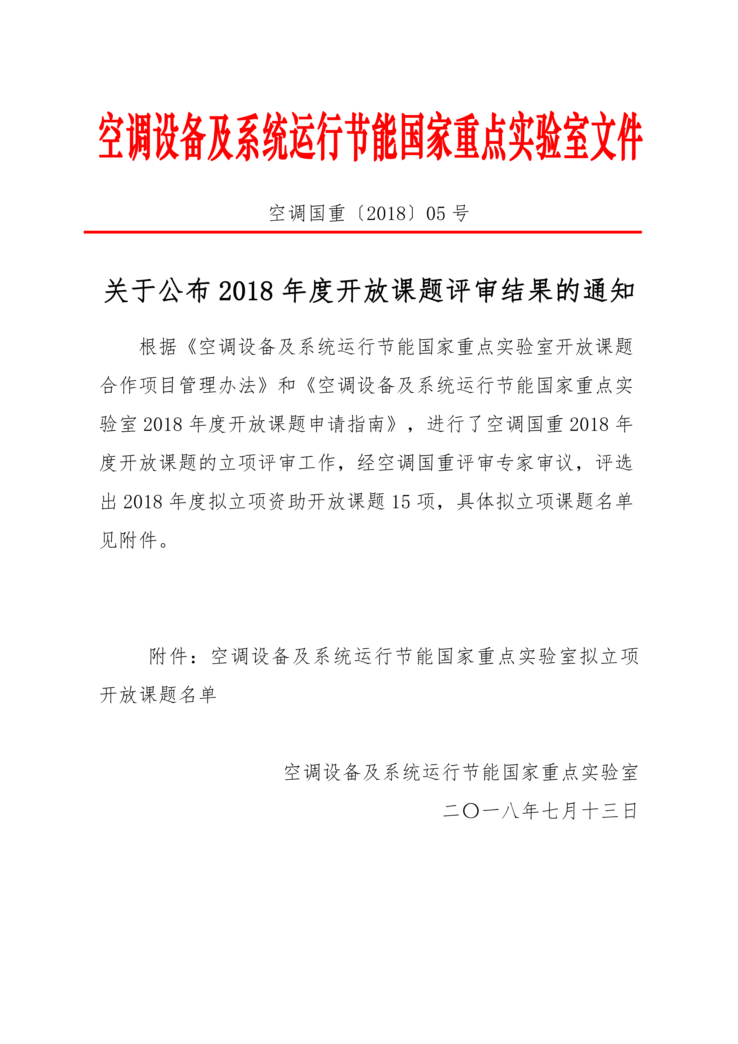 根據(jù)《空調(diào)設(shè)備及系統(tǒng)運(yùn)行節(jié)能國(guó)家重點(diǎn)實(shí)驗(yàn)室開放課題合作項(xiàng)目管理辦法》和《空調(diào)設(shè)備及系統(tǒng)運(yùn)行節(jié)能國(guó)家重點(diǎn)實(shí)驗(yàn)室2018年度開放課題申請(qǐng)指南》,進(jìn)行了空調(diào)國(guó)重2018年度開放課題的立項(xiàng)評(píng)審工作,經(jīng)空調(diào)國(guó)重評(píng)審專家審議,評(píng)選出2018年度擬立項(xiàng)資助開放課題15項(xiàng),具體擬立項(xiàng)課題名單見附件。